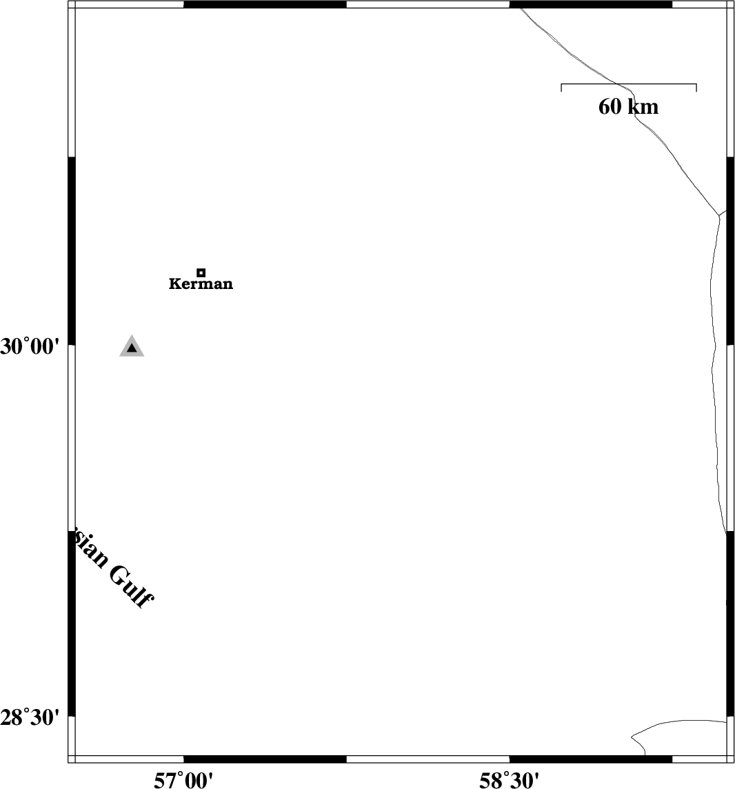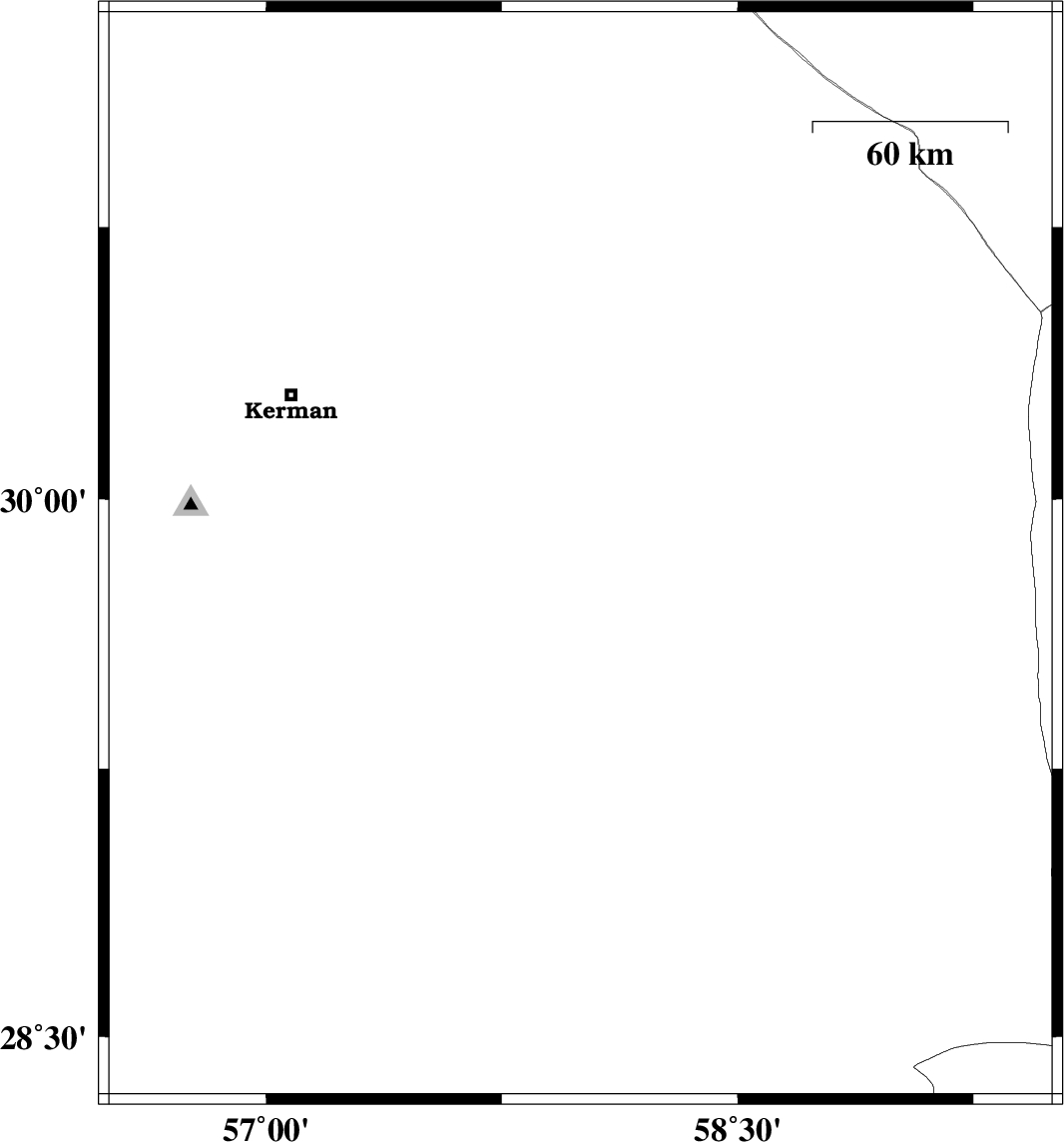 | 2020/06/09 | 00:20:06.2 | 04:50:06.2 | 29.84 | 58 | 10 | ML:3.3 | Kerman Province, 88 km North-West of Bam | ||