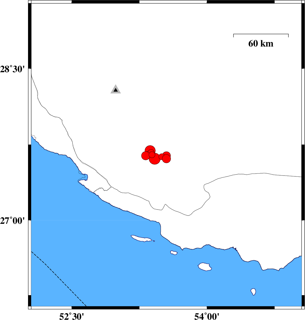 2020/06/09 19:44:54.5 00:14:54.5 27.6153.5510 ML:4.2 Fars Province, 49 km North-East of Lamerd
