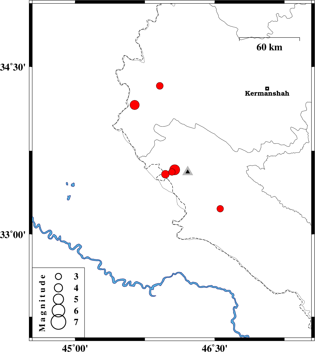 | 2020/06/03 | 08:16:54.5 | 12:46:54.5 | 33.58 | 46.07 | 15 | ML:5 | Ilam Province, 34 km -West of Ilam | ||