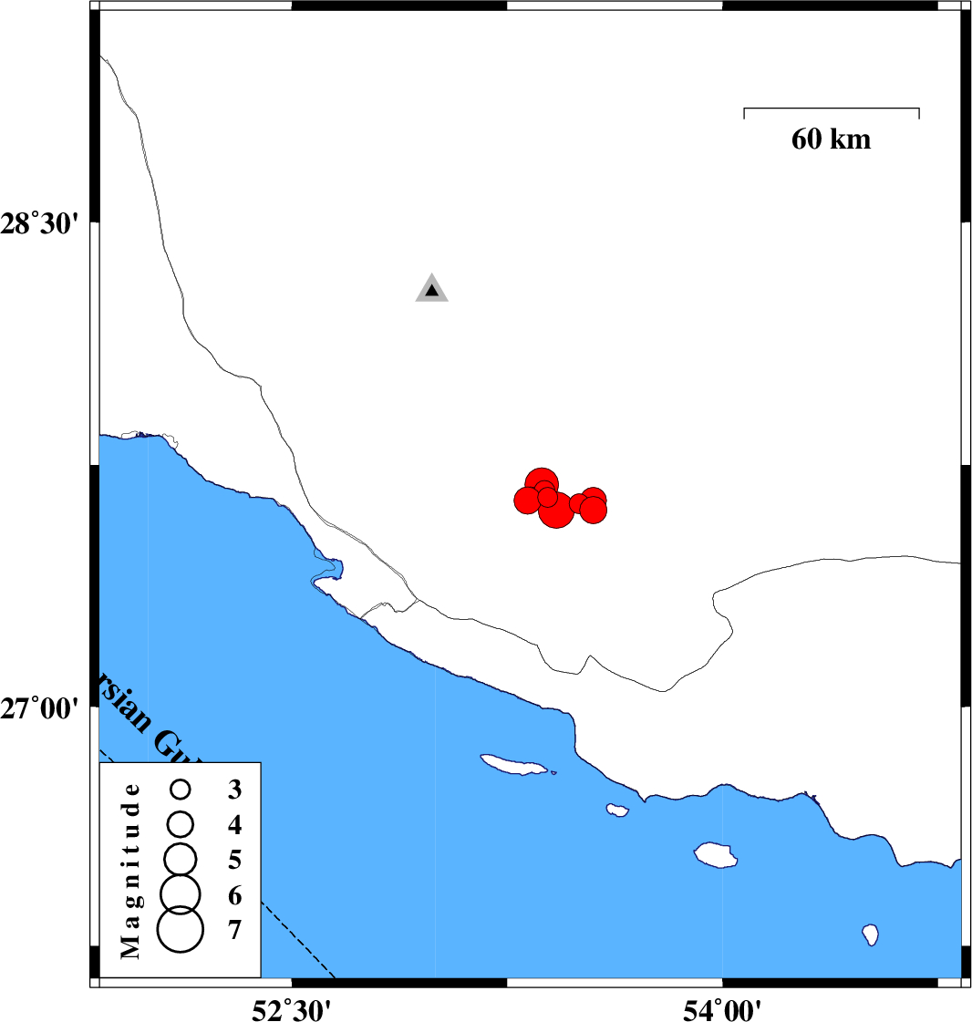 | 2020/06/09 | 19:44:54.5 | 00:14:54.5 | 27.61 | 53.55 | 10 | ML:4.2 | Fars Province, 49 km North-East of Lamerd | ||