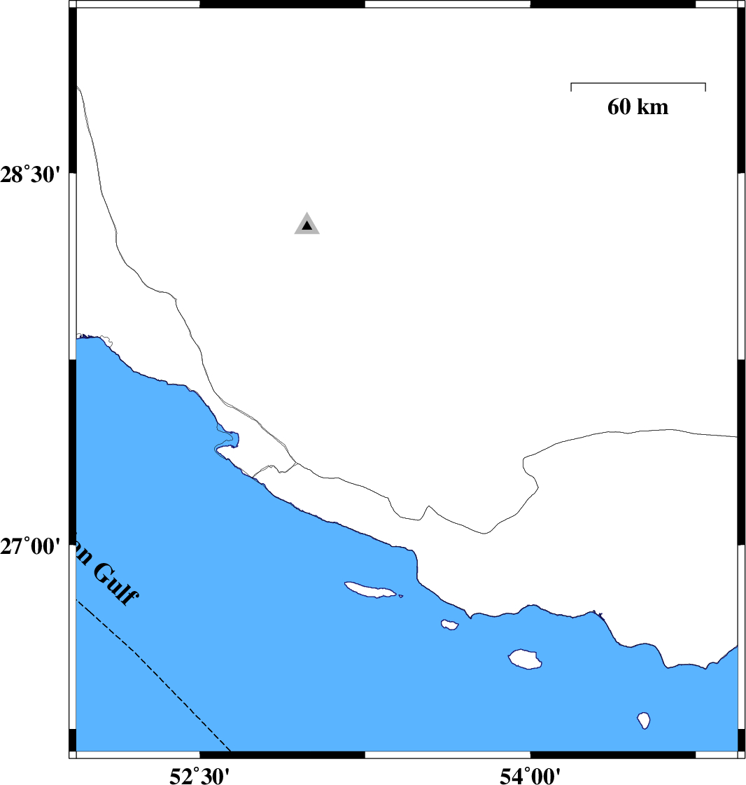 2020/06/09 21:55:12.5 02:25:12.5 27.6753.3810 ML:3.3 Fars Province, 43 km North-East of Lamerd