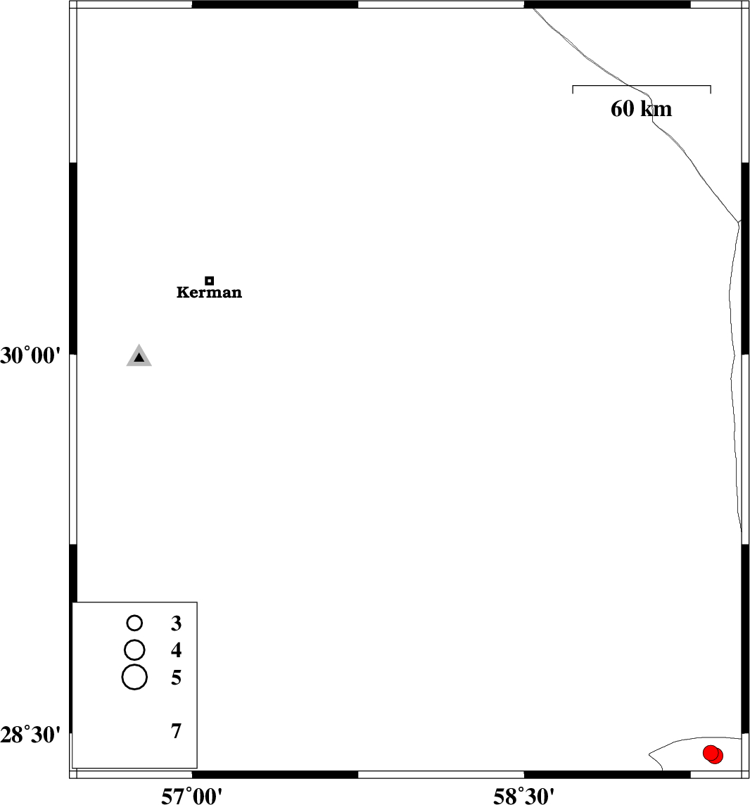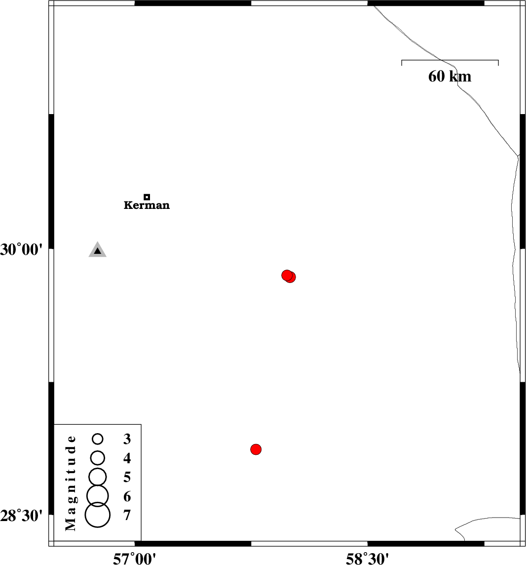 | 2020/06/09 | 00:20:06.2 | 04:50:06.2 | 29.84 | 58 | 10 | ML:3.3 | Kerman Province, 88 km North-West of Bam | ||