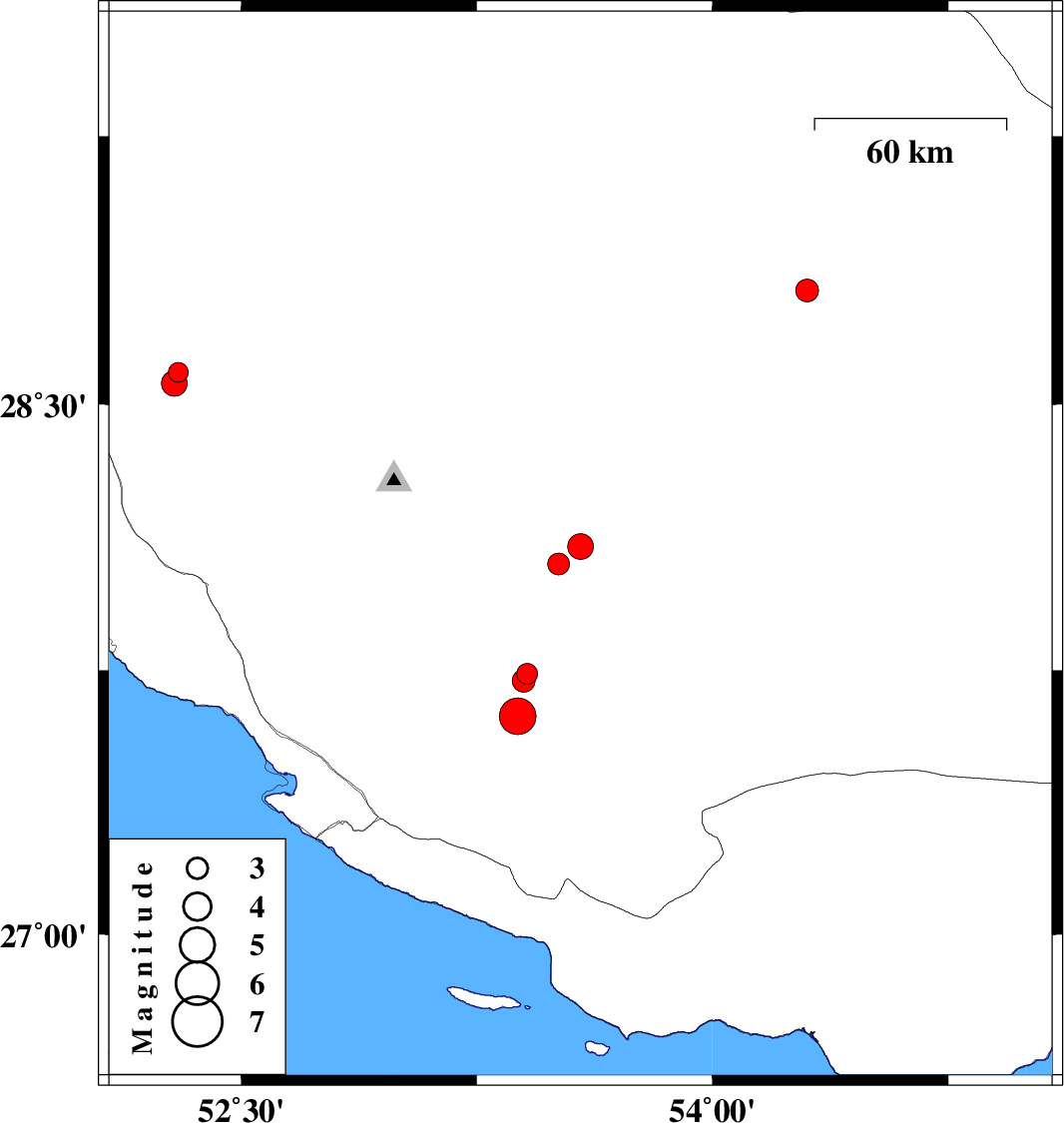 | 2020/06/14 | 18:05:59.2 | 22:35:59.2 | 27.62 | 53.38 | 10 | ML:5.2 | Fars Province, 38 km North-East of Lamerd |