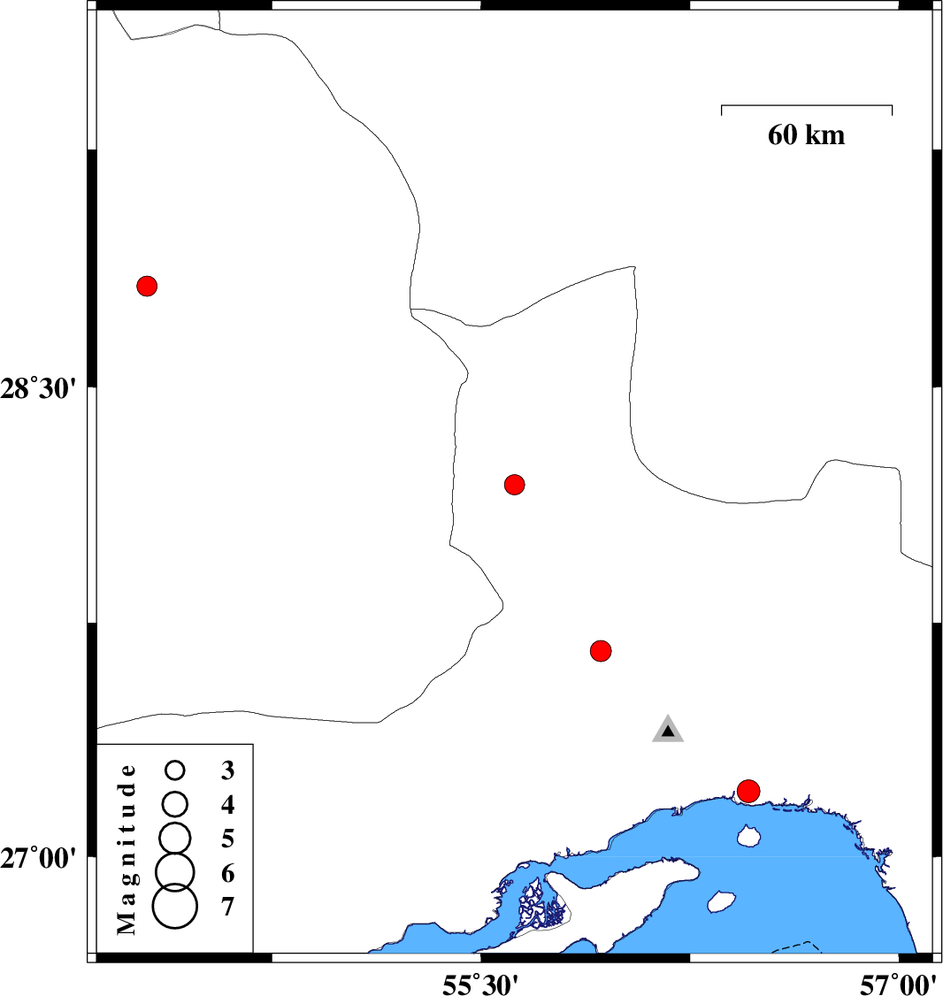 | 2020/06/21 | 21:46:04.3 | 02:16:04.3 | 27.21 | 56.46 | 10 | ML:3.7 | Hormozgan Province, 18 km -East of Bandar-e abbas | ||