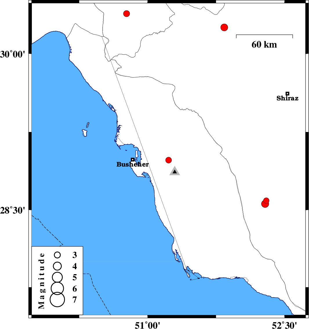 2020/06/28 | 00:34:48.6 | 05:04:48.6 | 28.98 | 51.23 | 10 | ML:3 | Bushehr Province, 12 km North of Ahram | ||