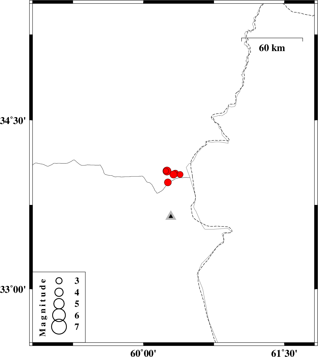 | 2020/06/12 | 21:52:53.9 | 02:22:53.9 | 34.03 | 60.34 | 10 | ML:3.2 | Khorasan(center) Province, 63 km South-East of Khaf | ||