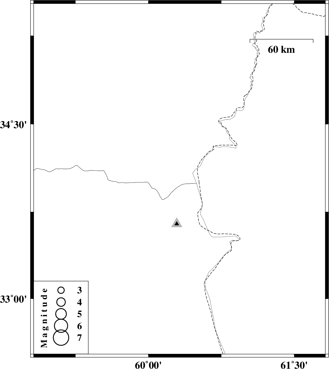 | 2020/06/28 | 07:46:52.5 | 12:16:52.5 | 34.02 | 60.32 | 10 | ML:3.5 | Khorasan(center) Province, 63 km South-East of Khaf |