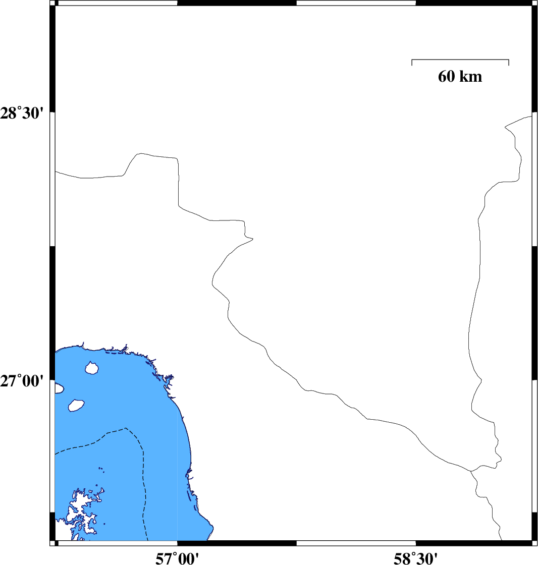 | 2020/06/27 | 07:28:31.5 | 11:58:31.5 | 27.59 | 57.73 | 15 | ML:3.5 | Kerman Province, 40 km South of Kahnuj | ||