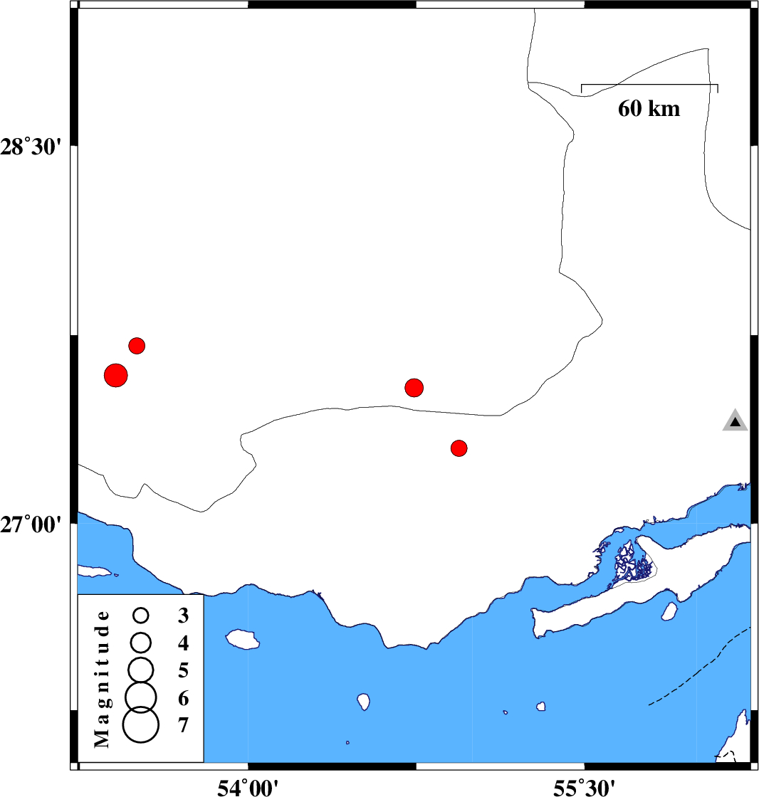 | 2020/07/16 | 02:43:06.2 | 07:13:06.2 | 27.54 | 54.74 | 10 | ML:3.6 | Fars Province, 42 km South-East of Lar | ||