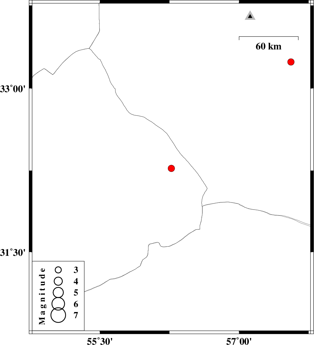 | 2020/07/19 | 01:15:27.5 | 05:45:27.5 | 32.27 | 56.27 | 24 | ML:3.2 | Yazd Province, 111 km North-East of Bafq | ||
