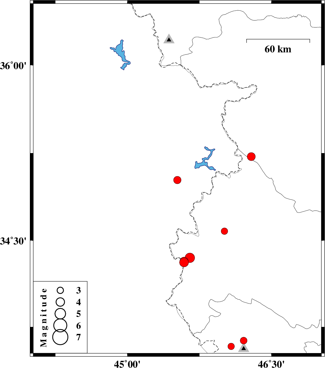 | 2020/07/07 | 08:52:26.6 | 13:22:26.6 | 34.35 | 45.65 | 12 | ML:4.5 | Kermanshah Province, 19 km South of Qasr-E-Shirin | ||