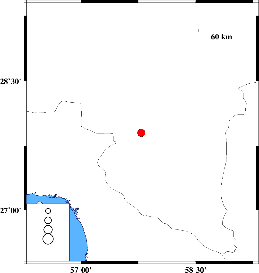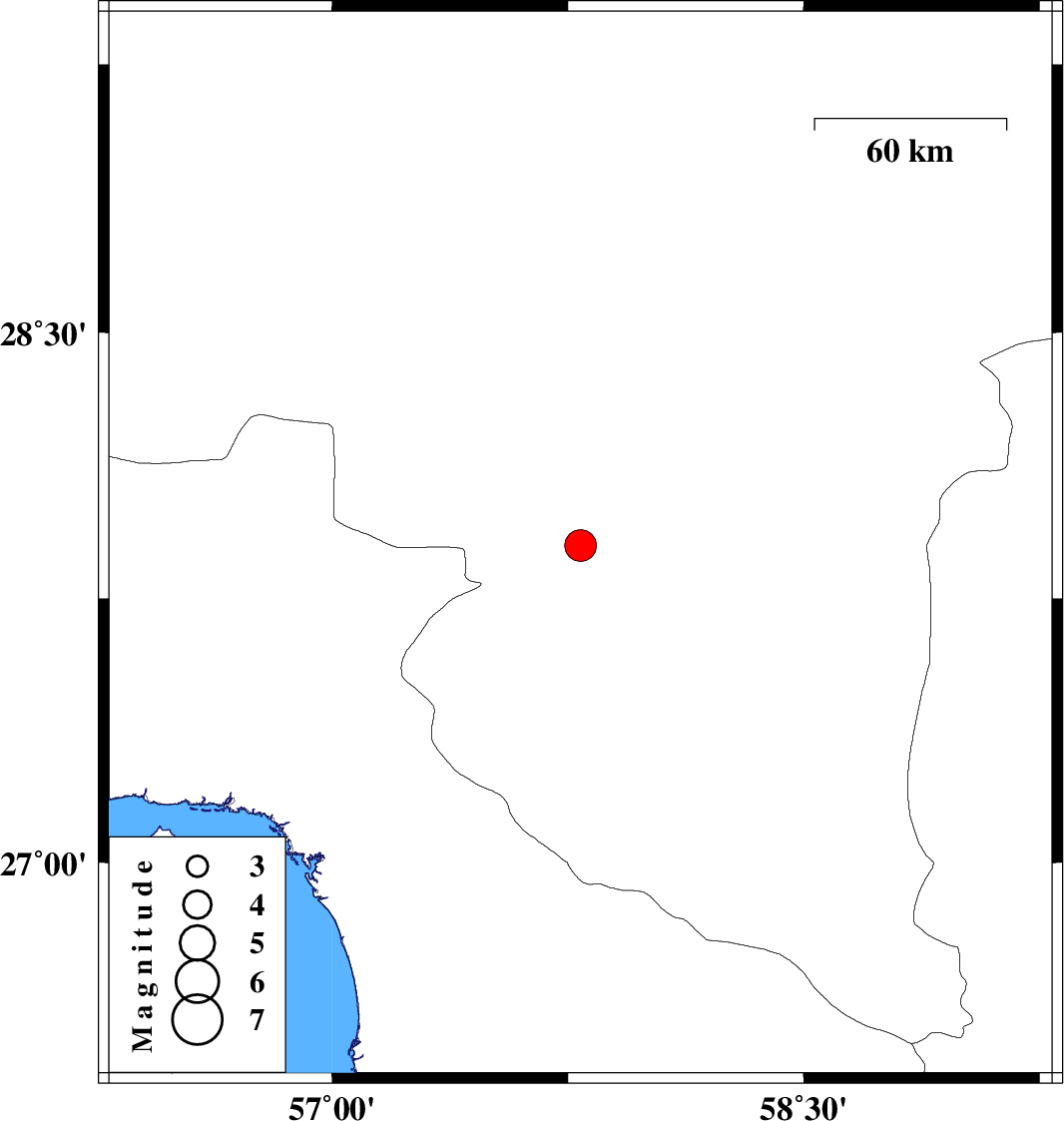 | 2020/08/01 | 02:24:50.1 | 06:54:50.1 | 27.9 | 57.79 | 10 | ML:4.5 | Kerman Province, 11 km of Kahnuj | ||