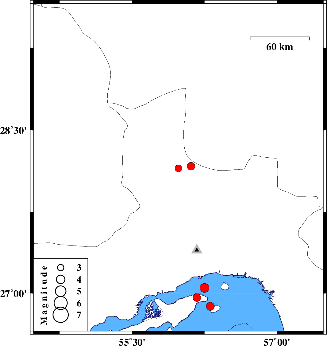 | 2020/07/27 | 11:12:37.5 | 15:42:37.5 | 27.05 | 56.25 | 18 | ML:4.3 | Persian Gulf, 11 km of Qeshm | ||