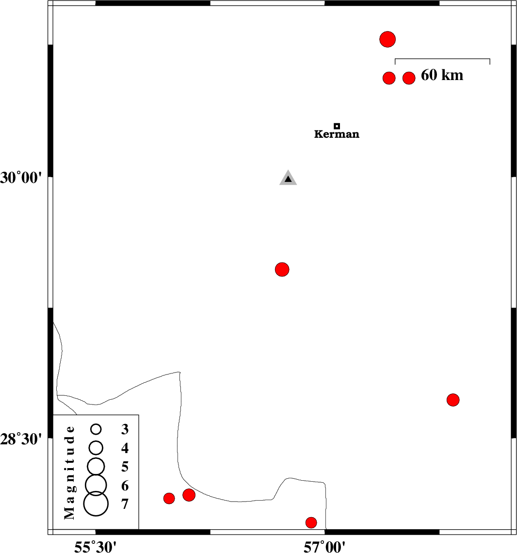 2020/07/06 | 22:17:50.1 | 02:47:50.1 | 30.56 | 57.55 | 15 | ML:3.6 | Kerman Province, 54 km North-East of Kerman |