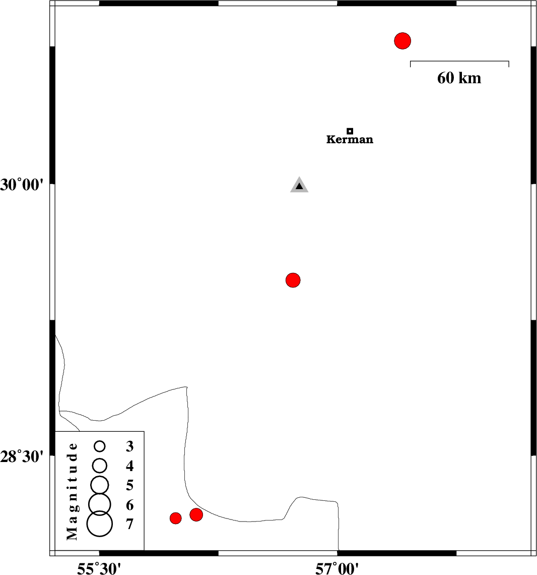 | 2020/07/28 | 06:06:39.9 | 10:36:39.9 | 30.78 | 57.41 | 10 | ML:4.6 | Kerman Province, 63 km North-East of Kerman | ||