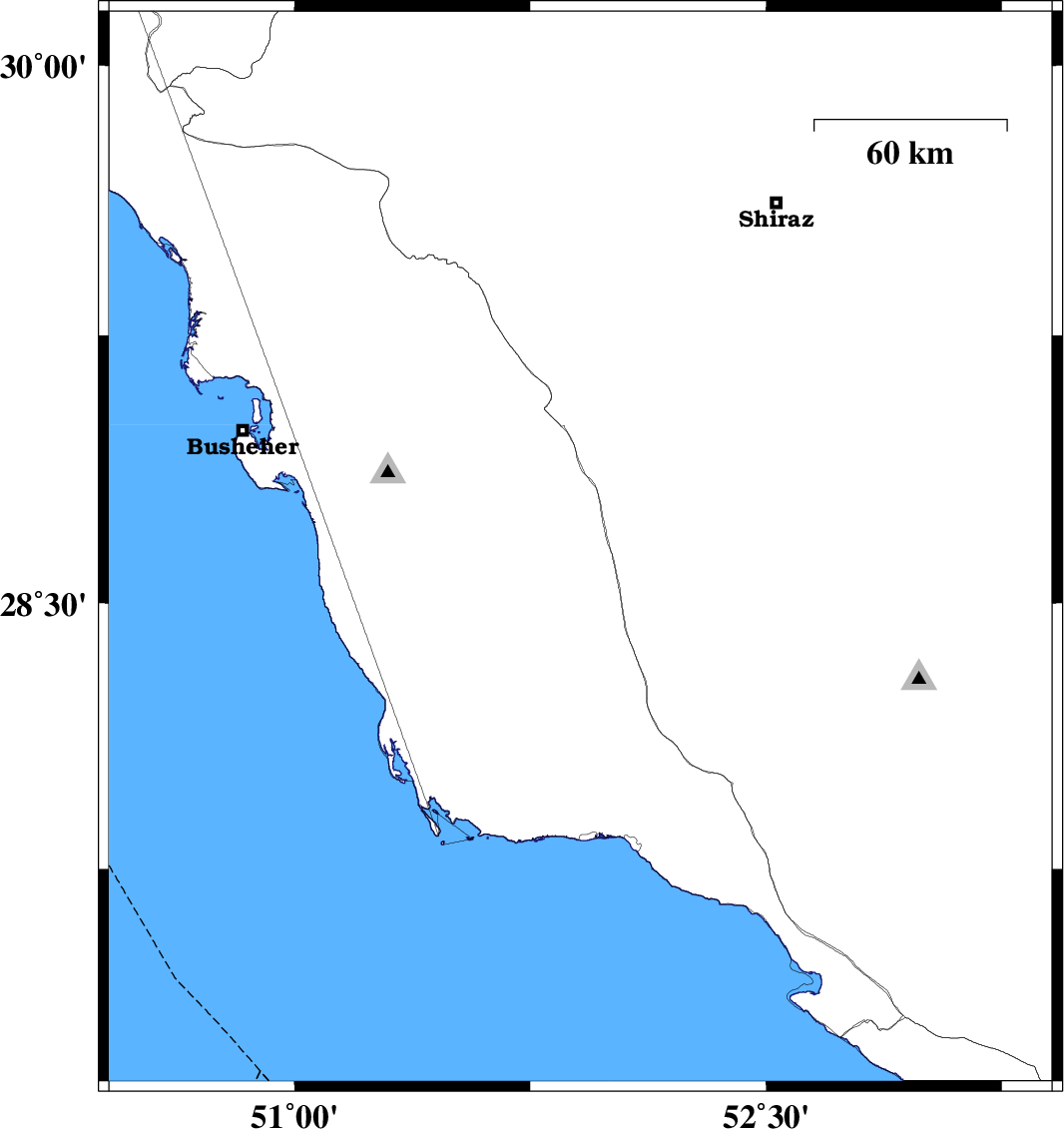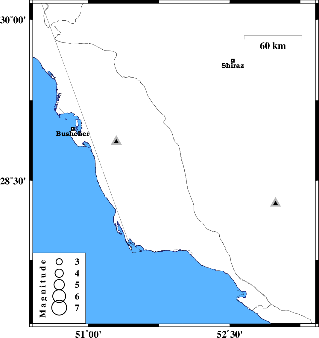 | 2020/08/11 | 06:31:47.1 | 11:01:47.1 | 28.65 | 51.91 | 15 | ML:4.5 | Bushehr Province, 30 km South-West of Farashband |