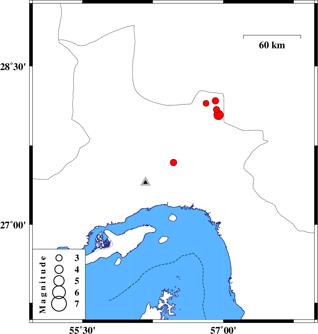 | 2020/08/07 | 14:53:32.4 | 19:23:32.4 | 28.15 | 56.817 | 17 | ML:3 | Hormozgan Province, 91 km South-East of Hajiabad | ||
