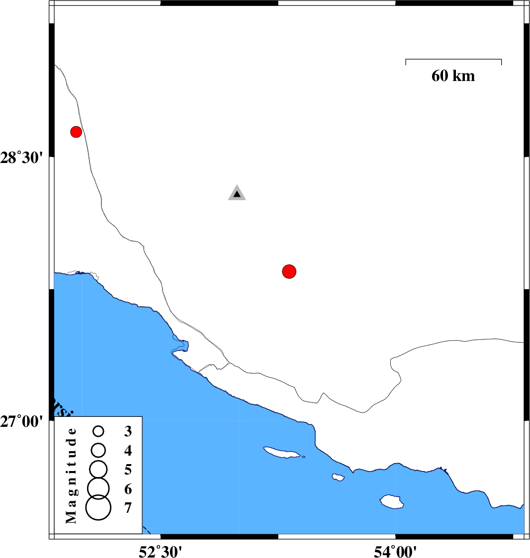 | 2020/08/21 | 05:16:07.3 | 09:46:07.3 | 27.85 | 53.32 | 20 | ML:3.9 | Fars Province, 59 km North-East of Lamerd | ||
