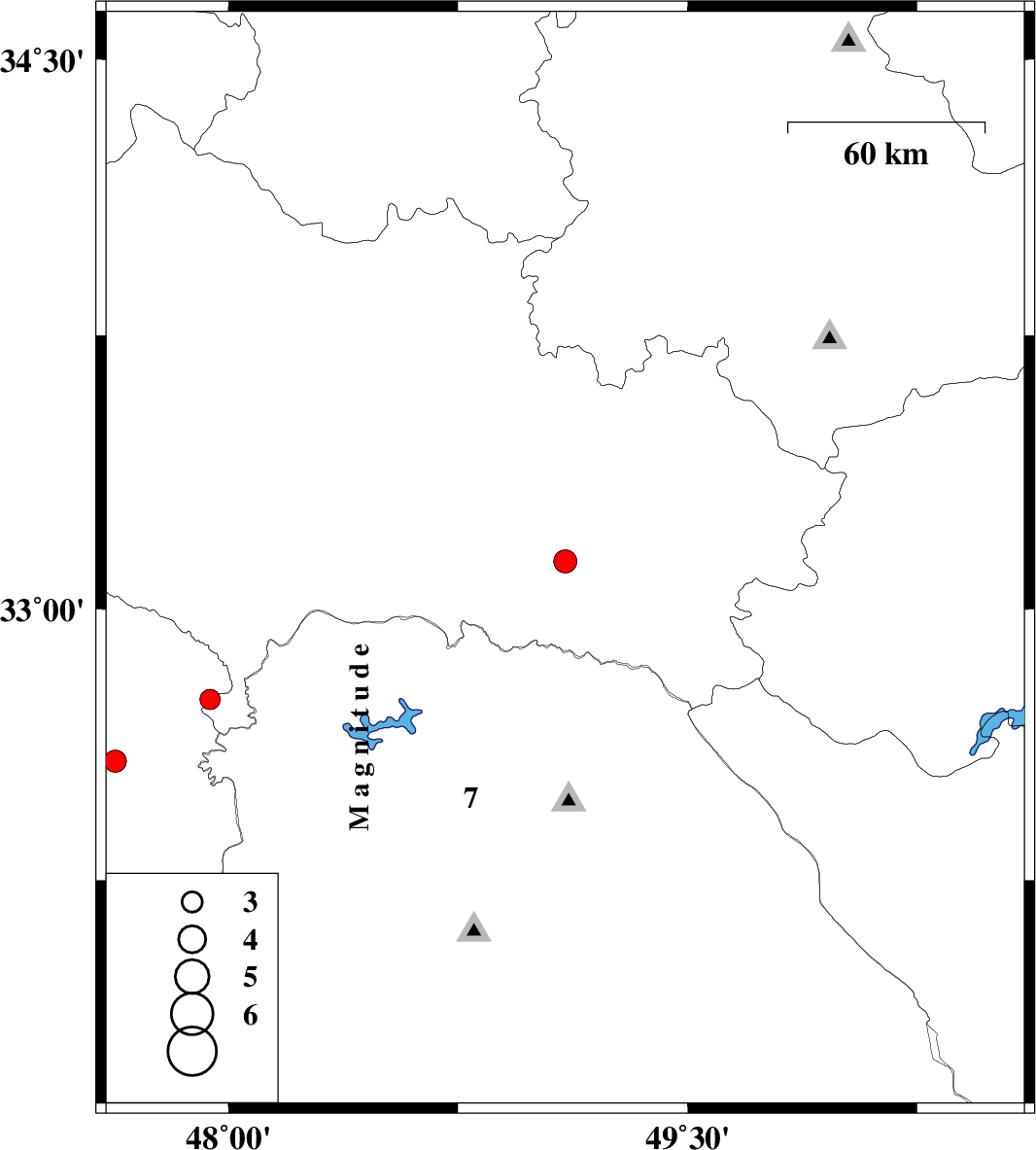 | 2020/08/14 | 21:49:56.6 | 02:19:56.6 | 32.75 | 47.94 | 10 | ML:3 | Lorestan Province, 50 km South-East of Pol-e dokhtar |