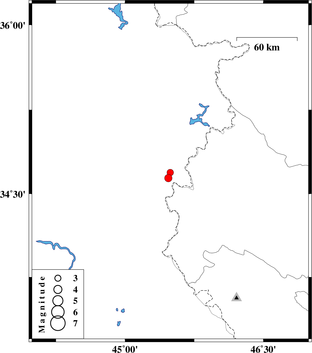 | 2020/08/23 | 20:00:35.3 | 00:30:35.3 | 34.64 | 45.47 | 41 | ML:3.6 | Iraq, 17 km North-West of Qasr-E-Shirin | ||