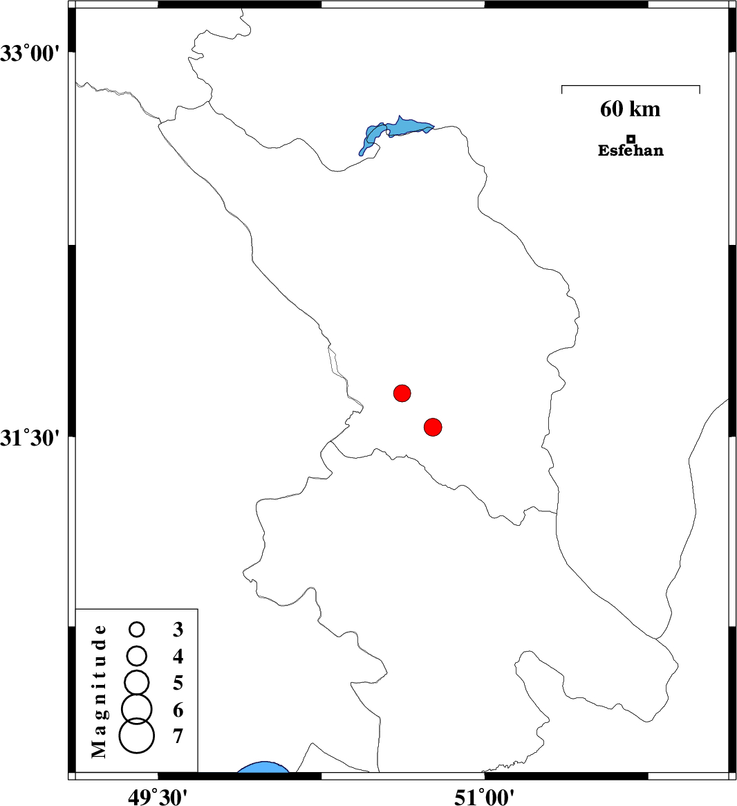 | 2020/07/28 | 03:56:00.7 | 08:26:00.7 | 31.537 | 50.762 | 12 | ML:3.6 | Chaharmahal Bakhtiari Province, 6 km of Lordegan |