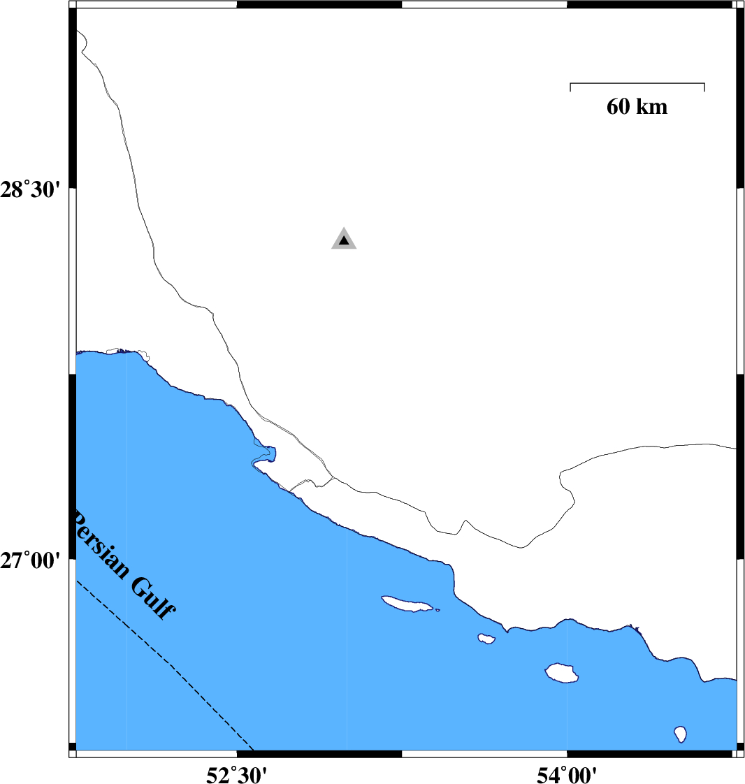 2020/08/14 13:41:11.6 18:11:11.6 28.6451.9611 ML:3.3 Bushehr Province, 28 km South-West of Farashband