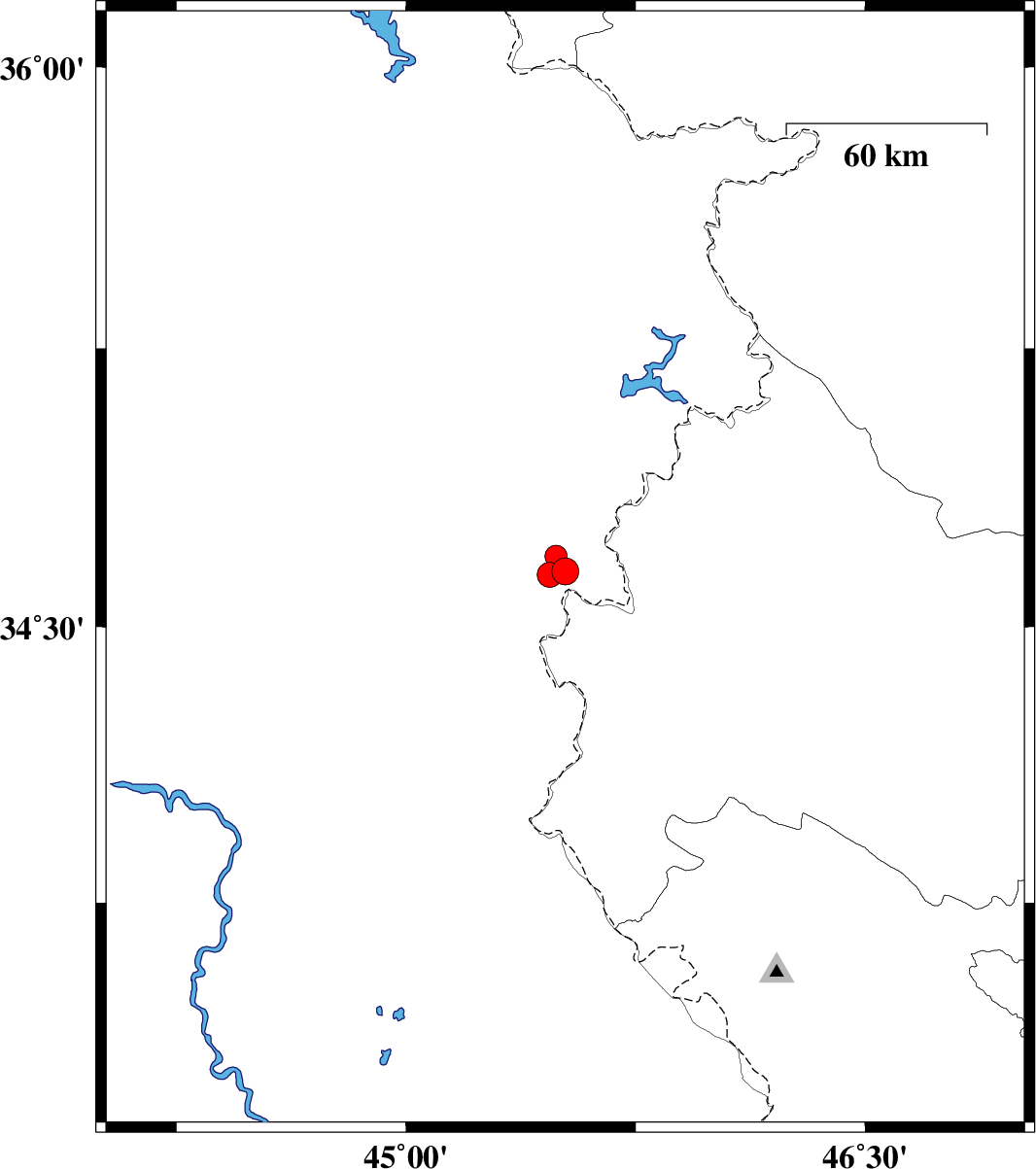 | 2020/08/26 | 00:42:02.4 | 05:12:02.4 | 34.65 | 45.52 | 10 | ML:4 | Iraq, 16 km North of Qasr-E-Shirin | ||
