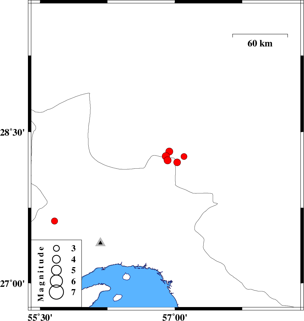 | 2020/08/27 | 21:42:28.4 | 02:12:28.4 | 27.619 | 55.66 | 9 | ML:3.3 | Hormozgan Province, 80 km South-West of Hajiabad |