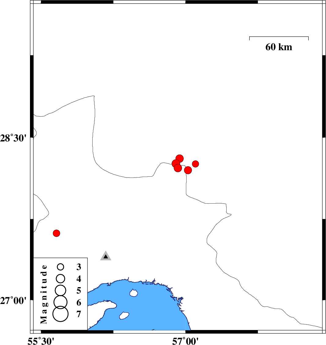 | 2020/08/27 | 21:42:28.4 | 02:12:28.4 | 27.619 | 55.66 | 9 | ML:3.3 | Hormozgan Province, 80 km South-West of Hajiabad |