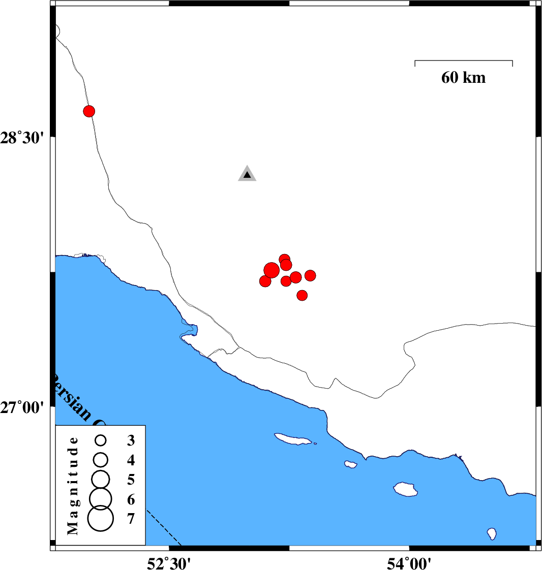 | 2020/09/08 | 01:34:19.1 | 06:04:19.1 | 27.76 | 53.14 | 10 | ML:4.4 | Fars Province, 48 km North of Lamerd | ||