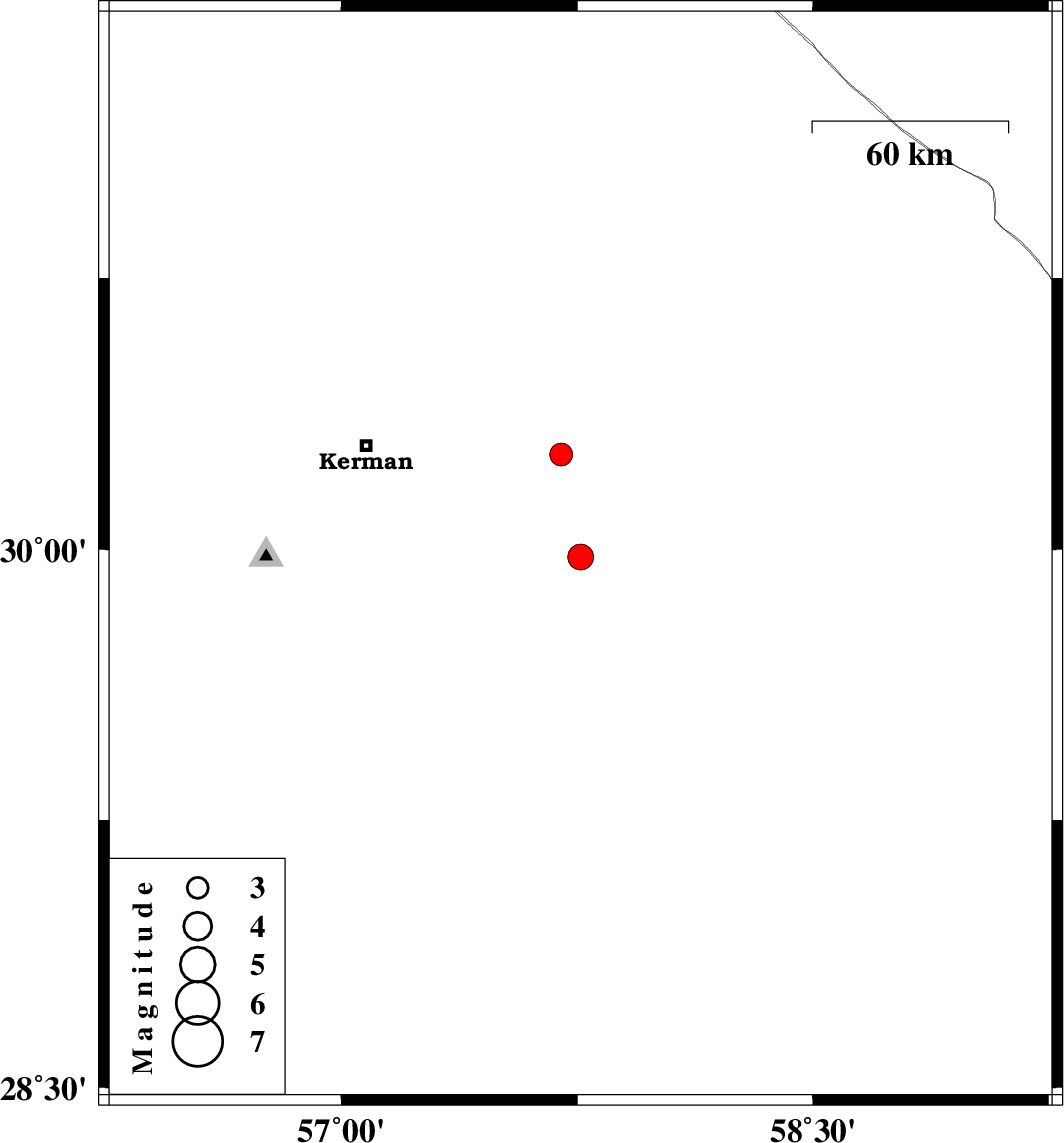 | 2020/09/09 | 04:06:46.9 | 08:36:46.9 | 29.98 | 57.76 | 10 | ML:3.7 | Kerman Province, 74 km South-East of Kerman | ||