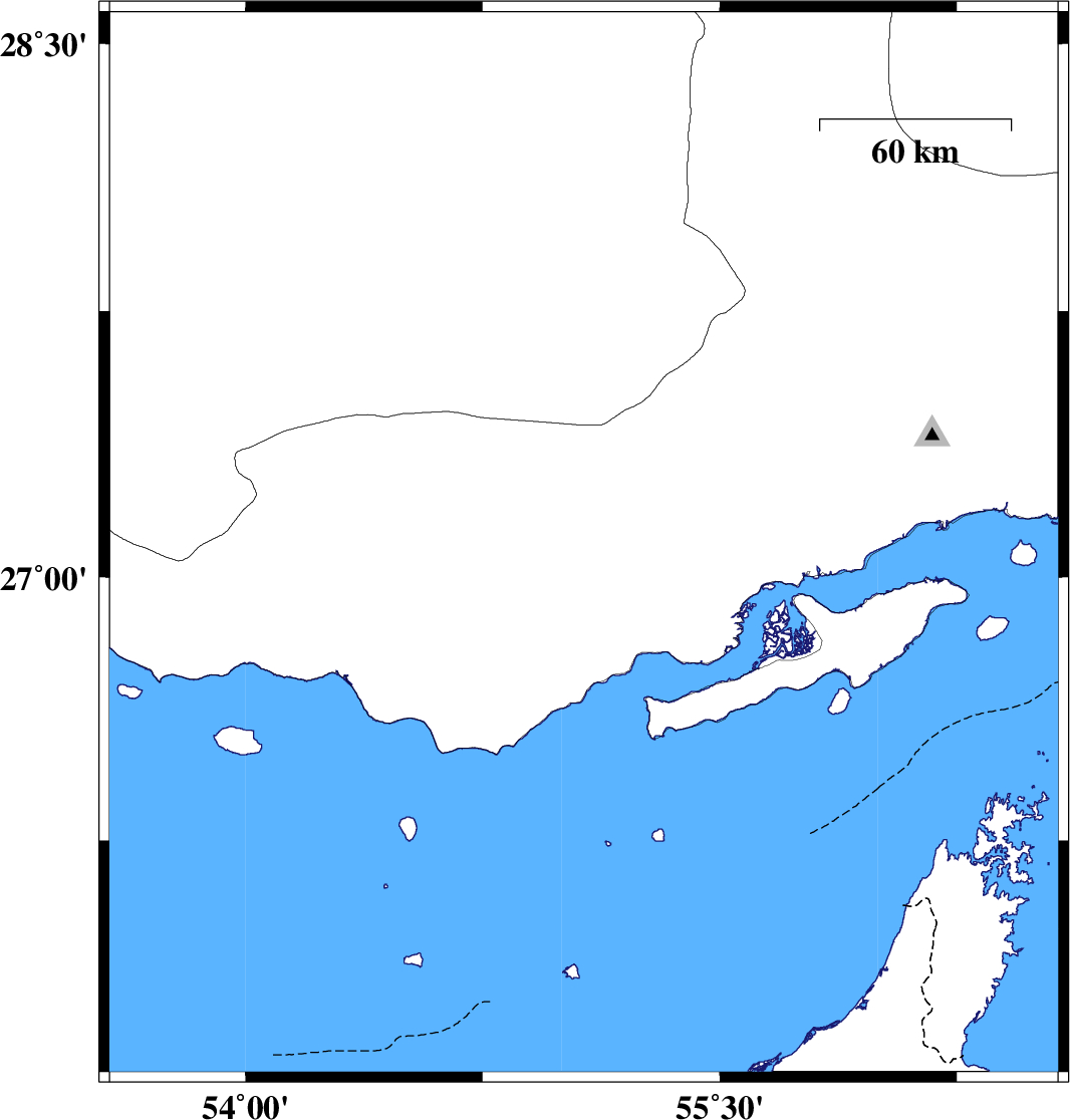 | 2020/08/27 | 21:42:28.4 | 02:12:28.4 | 27.619 | 55.66 | 9 | ML:3.3 | Hormozgan Province, 80 km South-West of Hajiabad | ||