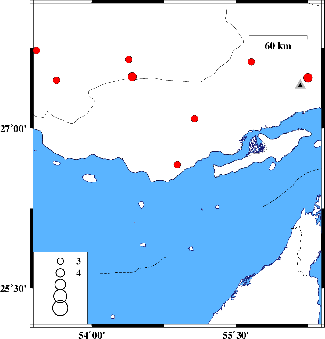 | 2020/09/11 | 13:11:33.9 | 17:41:33.9 | 27.09 | 55.07 | 18 | ML:3.2 | Hormozgan Province, 66 km North-East of Bandar-e lengeh | ||