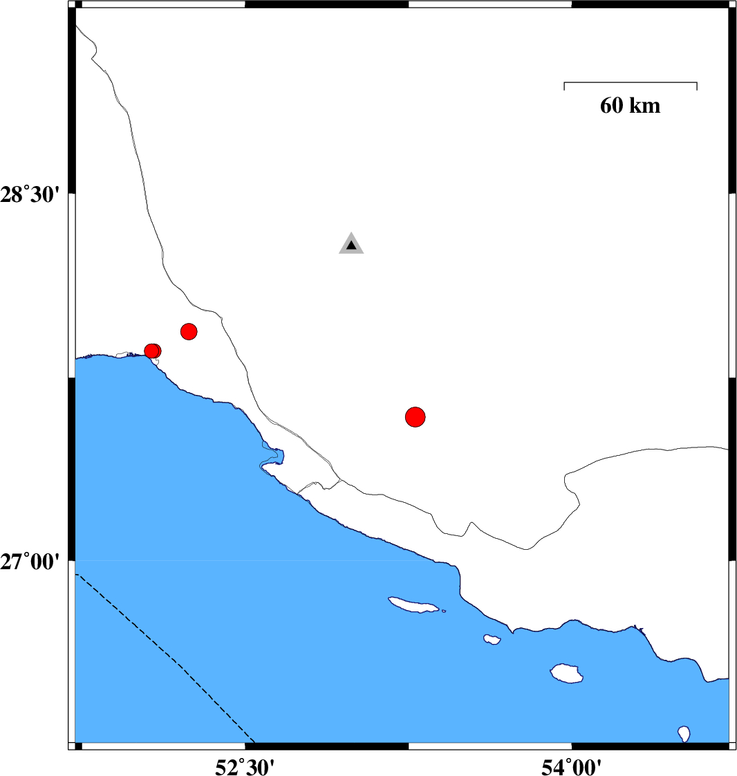 | 2020/09/19 | 10:18:27.7 | 14:48:27.7 | 27.52 | 52.47 | 10 | ML:3.2 | Persian Gulf, 41 km -West of Mehr | ||