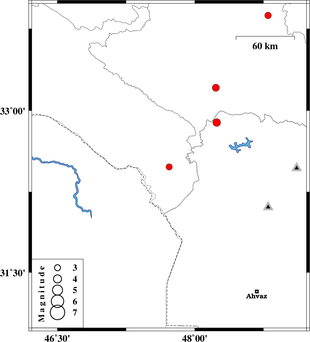 | 2020/09/17 | 07:39:43.2 | 12:09:43.2 | 32.89 | 48.24 | 10 | ML:3.8 | Khoozestan Province, 49 km North-West of Andimeshk | ||