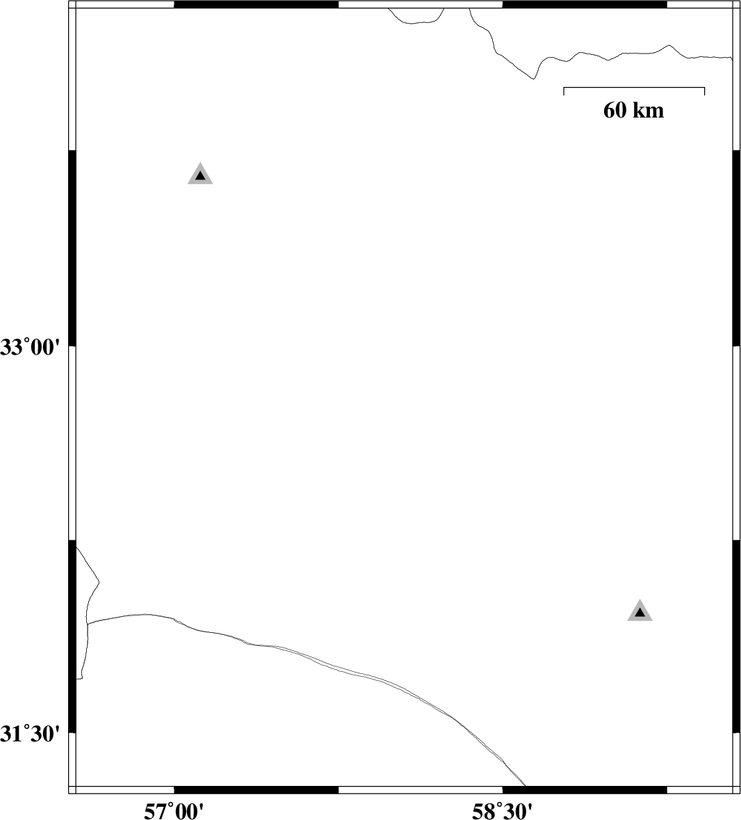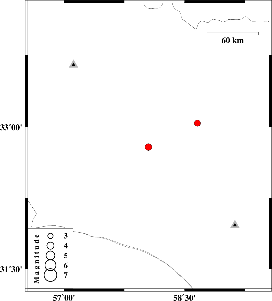 | 2020/09/23 | 18:15:11.2 | 21:45:11.2 | 32.79 | 58.05 | 10 | ML:3.8 | Khorasan(center) Province, 111 km South-West of Birjand | ||