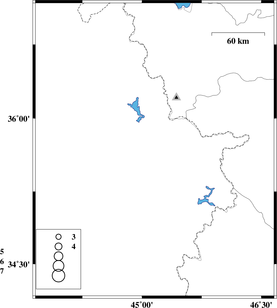 | 2020/09/23 | 18:29:46.1 | 21:59:46.1 | 35.67 | 45.16 | 10 | ML:3.9 | Iraq, 28 km North-West of Sulaymaniyah |