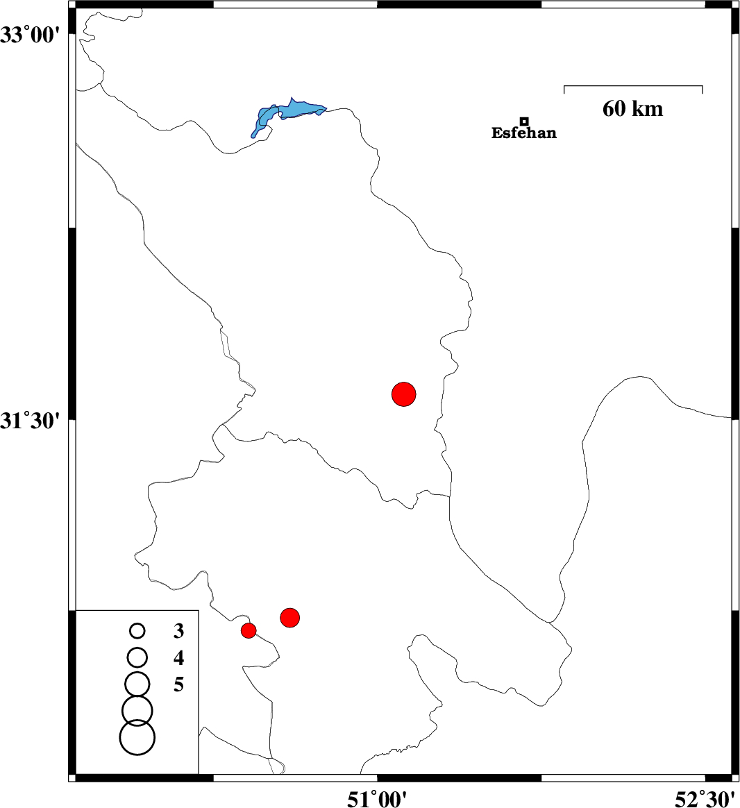 2020/09/29 | 04:08:03.6 | 07:38:03.6 | 31.6 | 51.12 | 10 | ML:5 | Chaharmahal Bakhtiari Province, 32 km North-East of Lordegan | ||