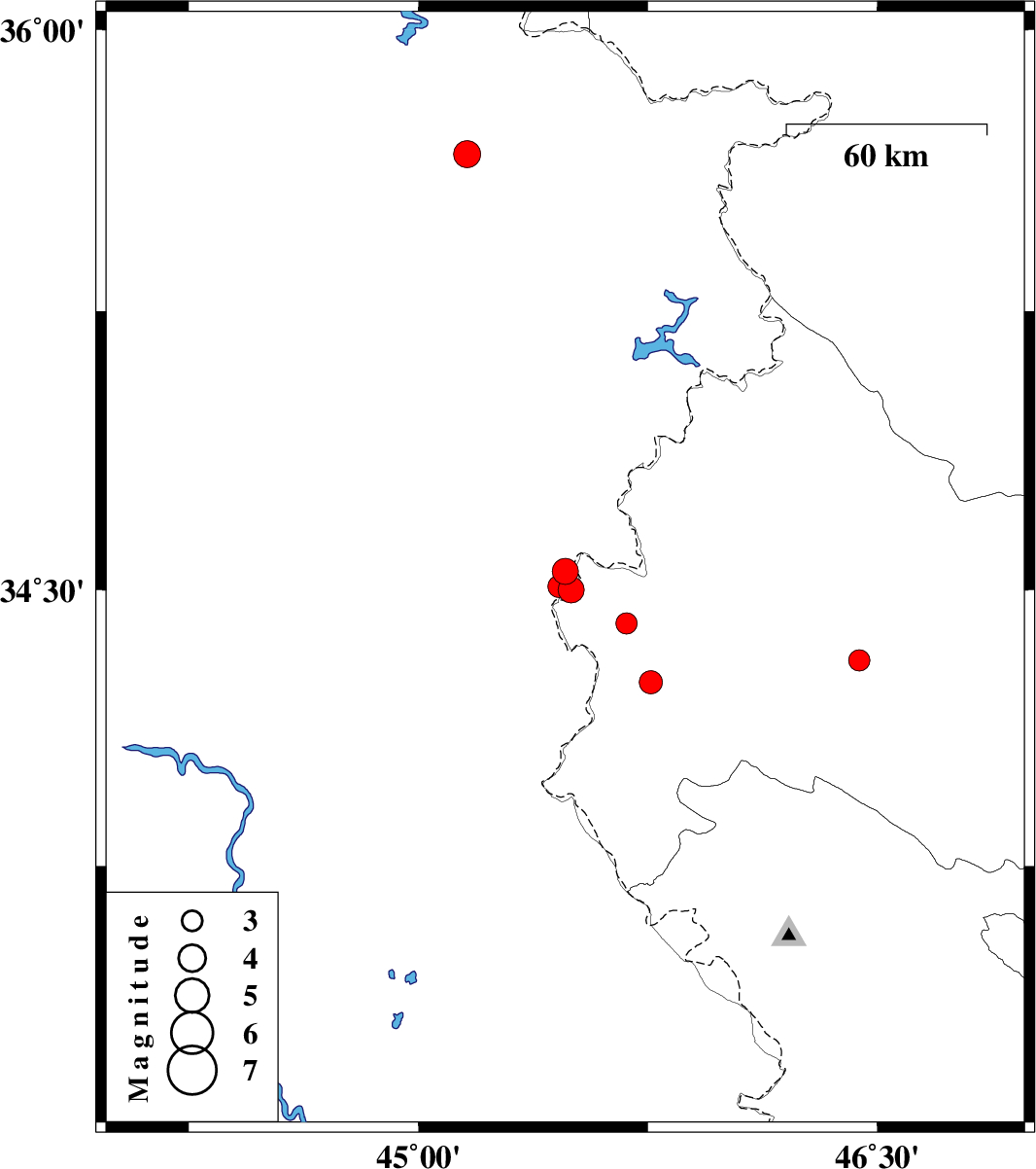 | 2020/09/28 | 18:46:00.2 | 22:16:00.2 | 34.55 | 45.48 | 10 | ML:3.8 | Iraq, 10 km -West of Qasr-E-Shirin | ||