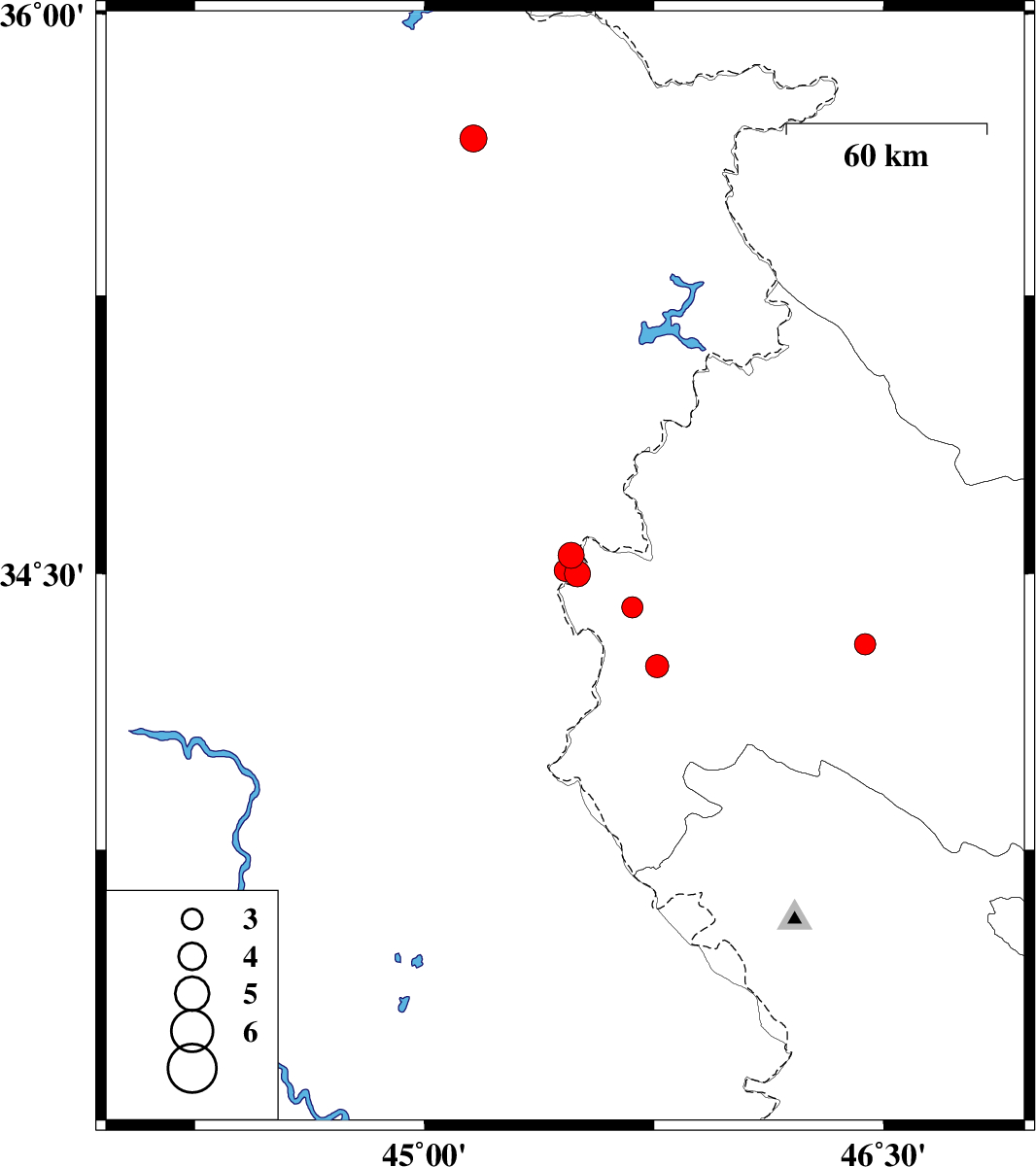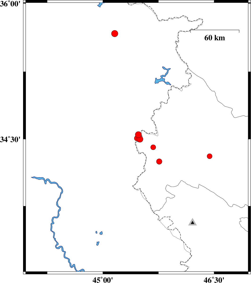 | 2020/09/28 | 18:46:00.2 | 22:16:00.2 | 34.55 | 45.48 | 10 | ML:3.8 | Iraq, 10 km -West of Qasr-E-Shirin | ||