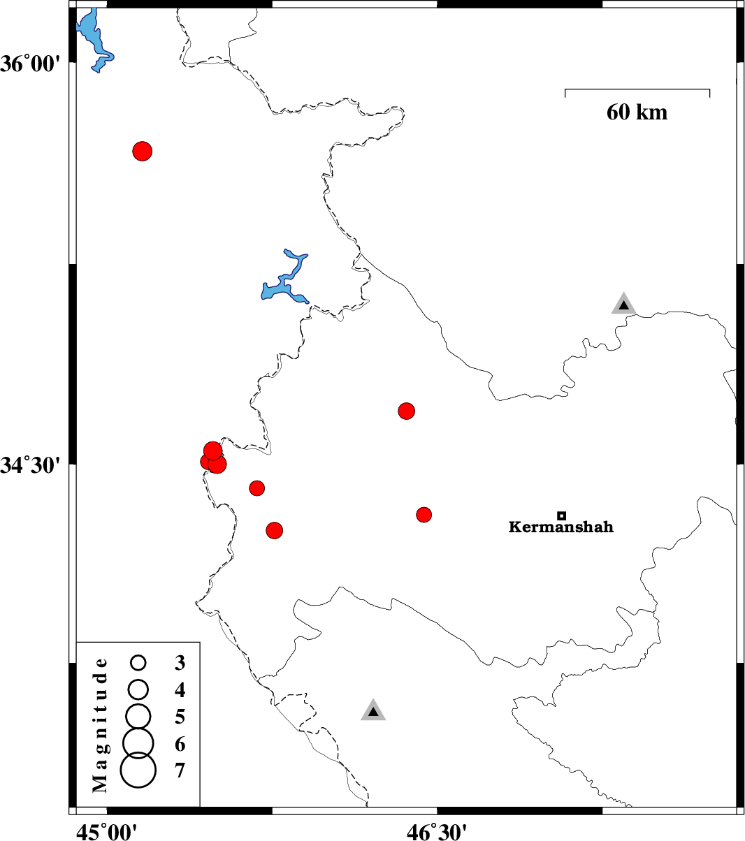 | 2020/09/28 | 18:46:00.2 | 22:16:00.2 | 34.55 | 45.48 | 10 | ML:3.8 | Iraq, 10 km -West of Qasr-E-Shirin | ||