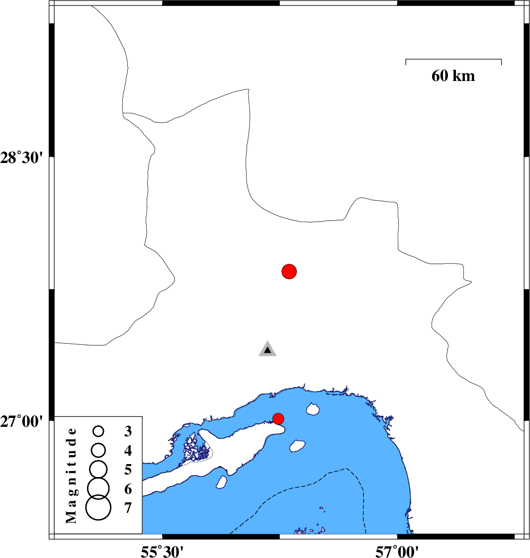 | 2020/10/05 | 04:33:00.1 | 08:03:00.1 | 27.01 | 56.24 | 10 | ML:3.3 | Persian Gulf, 7 km of Qeshm |