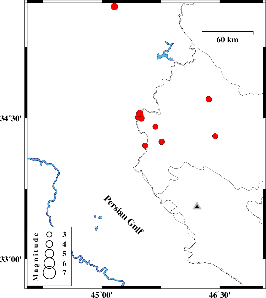 | 2020/09/28 | 18:45:02.6 | 22:15:02.6 | 34.5 | 45.5 | 17 | ML:3.8 | Iraq, 8 km of Qasr-E-Shirin | ||
