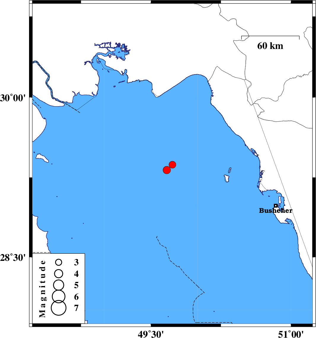 2020/09/18 04:14:26.6 08:44:26.6 29.3749.7323 ML:3.4 Persian Gulf, 96 km South of Hendijan