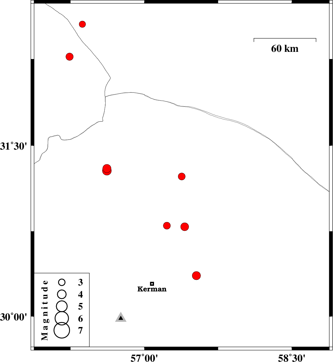 | 2020/09/19 | 09:23:13.5 | 13:53:13.5 | 30.8 | 57.23 | 10 | ML:3.2 | Kerman Province, 59 km North-East of Kerman |