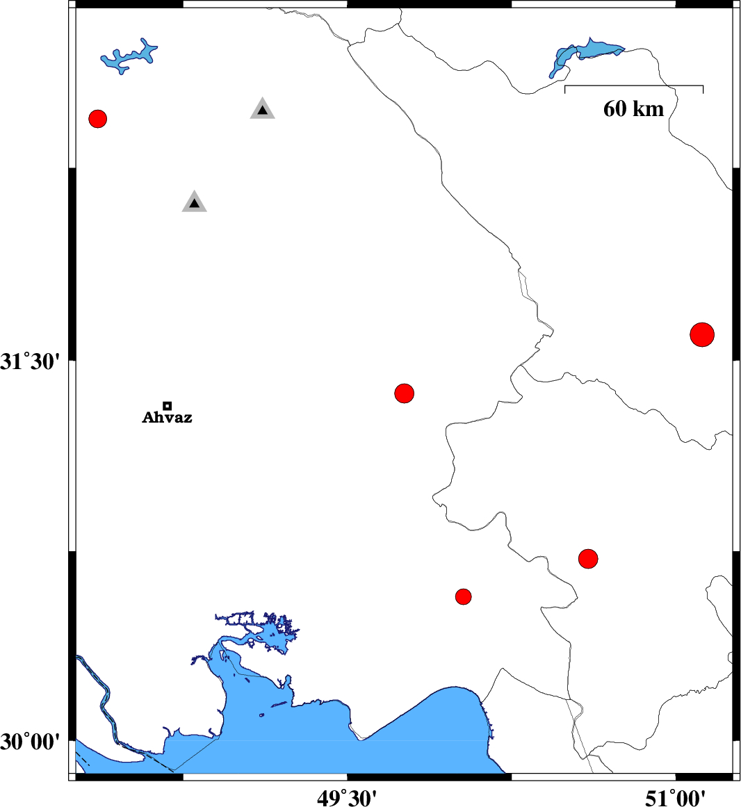 | 2020/10/23 | 16:35:20.1 | 20:05:20.1 | 31.37 | 49.76 | 15 | ML:4 | Khoozestan Province, 18 km -East of Ramhormoz | ||