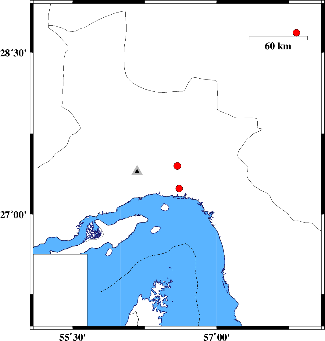2020/10/24 | 08:01:38.1 | 11:31:38.1 | 27.45 | 56.59 | 10 | ML:3.4 | Hormozgan Province, 42 km North-East of Bandar-e abbas | ||