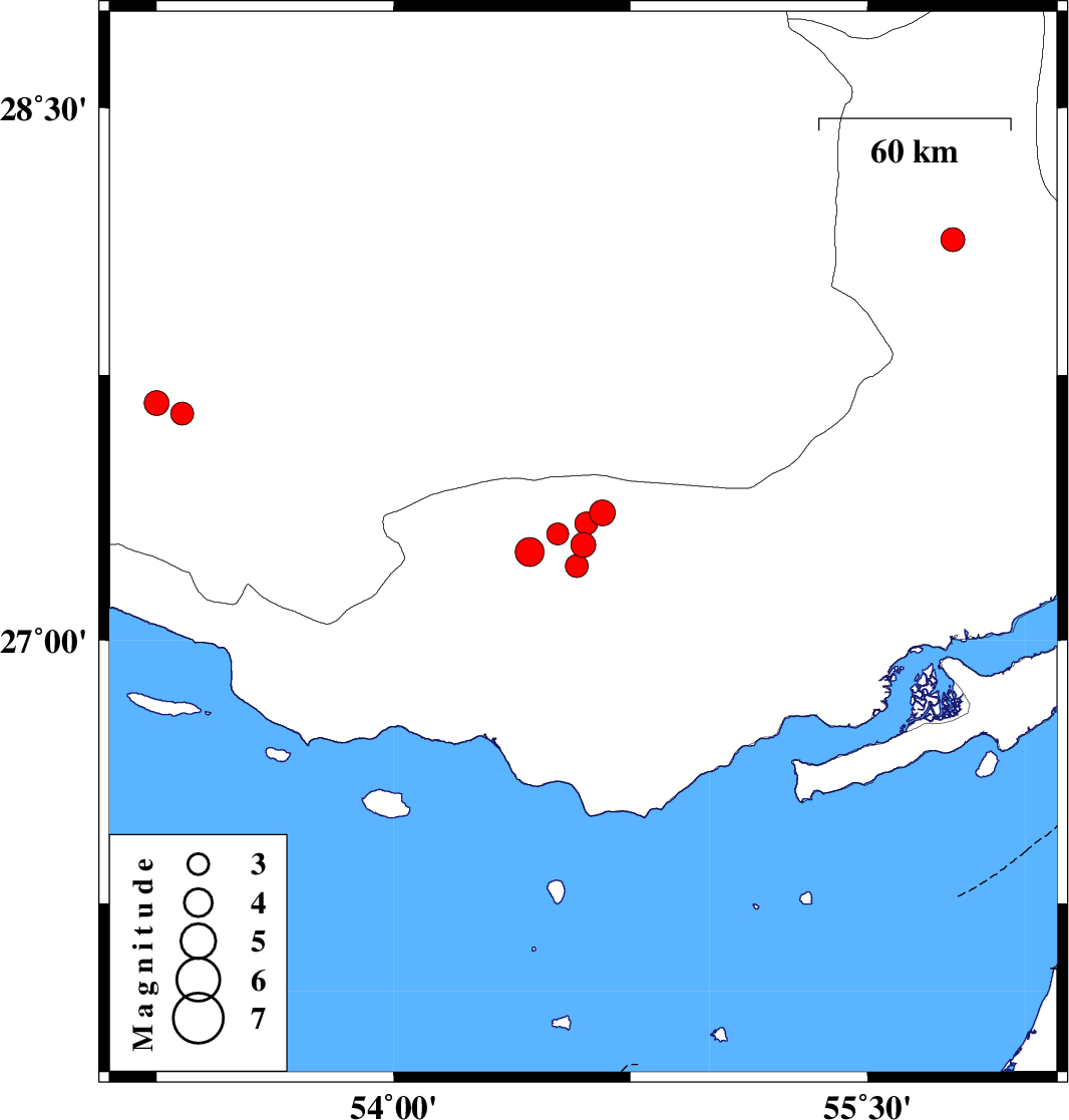 2020/09/28 03:30:26.9 07:00:26.9 27.6453.3310 ML:3.3 Fars Province, 38 km North-East of Lamerd