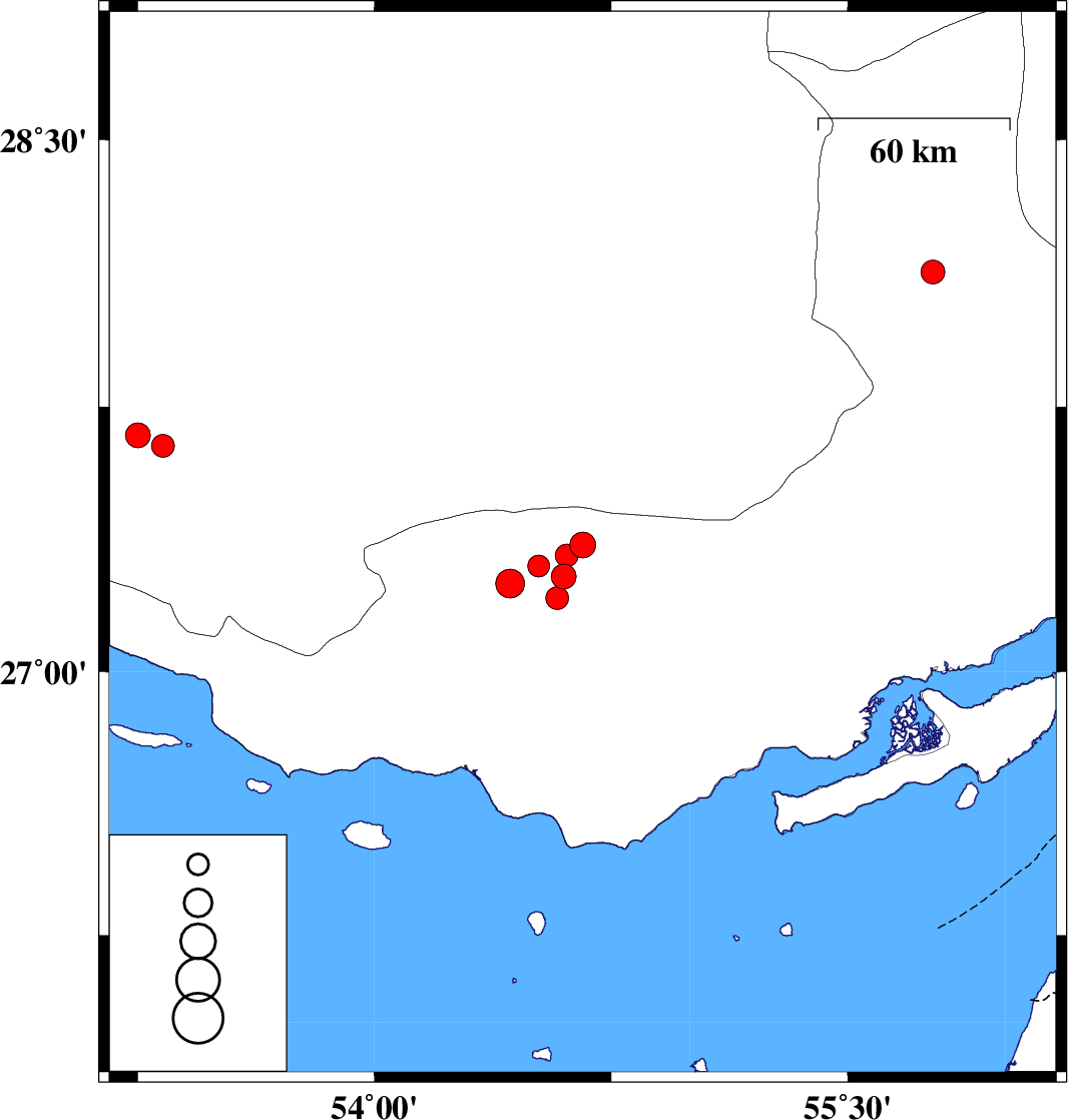 2020/10/14 17:51:26.6 21:21:26.6 27.3354.6120 ML:3.3 Hormozgan Province, 28 km North-East of Bastak