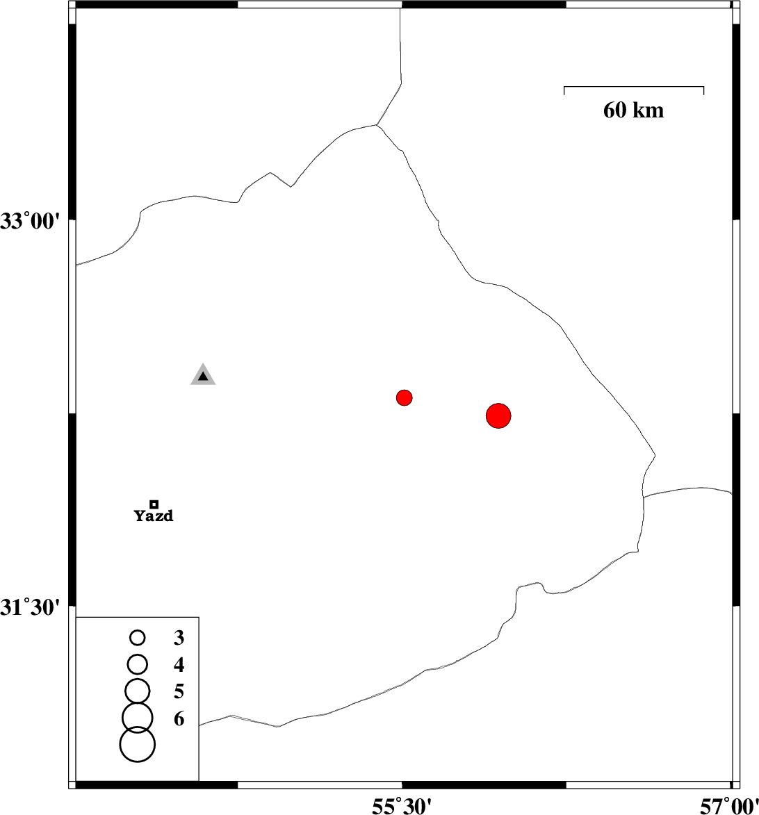 2020/10/30 | 18:15:23.2 | 21:45:23.2 | 32.31 | 55.51 | 14 | ML:3.2 | Yazd Province, 79 km North-East of Bafq | ||